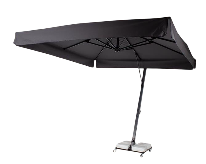 Ürünümüz 1 adet Şemsiye 4 adet mermer ayak ve 1 adet döner ayak aparatından ibarettir. Aydınlatması bulanan Şemsiyemiz 360 derece dönebilme ve güneş yönüne göre ayarlanabilme özelliğine sahiptir. Şemsiyemizde İspanyol su itici özelliğe sahip dış mekan kumaşları kullanılmıştır. Ürünümüzün profili alüminyumdur.