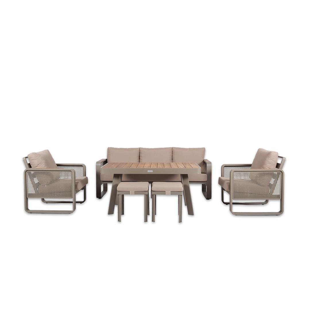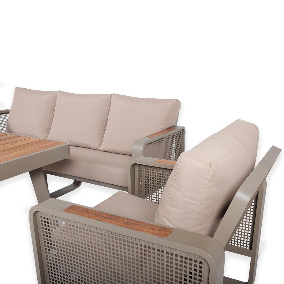 Dış mekana dayanıklı alüminyum malzeme kullanılarak üretilmiş olup ahşap kısımlar güneş ve suya dayanıklı iroko malzeme ile üretilmiştir.
