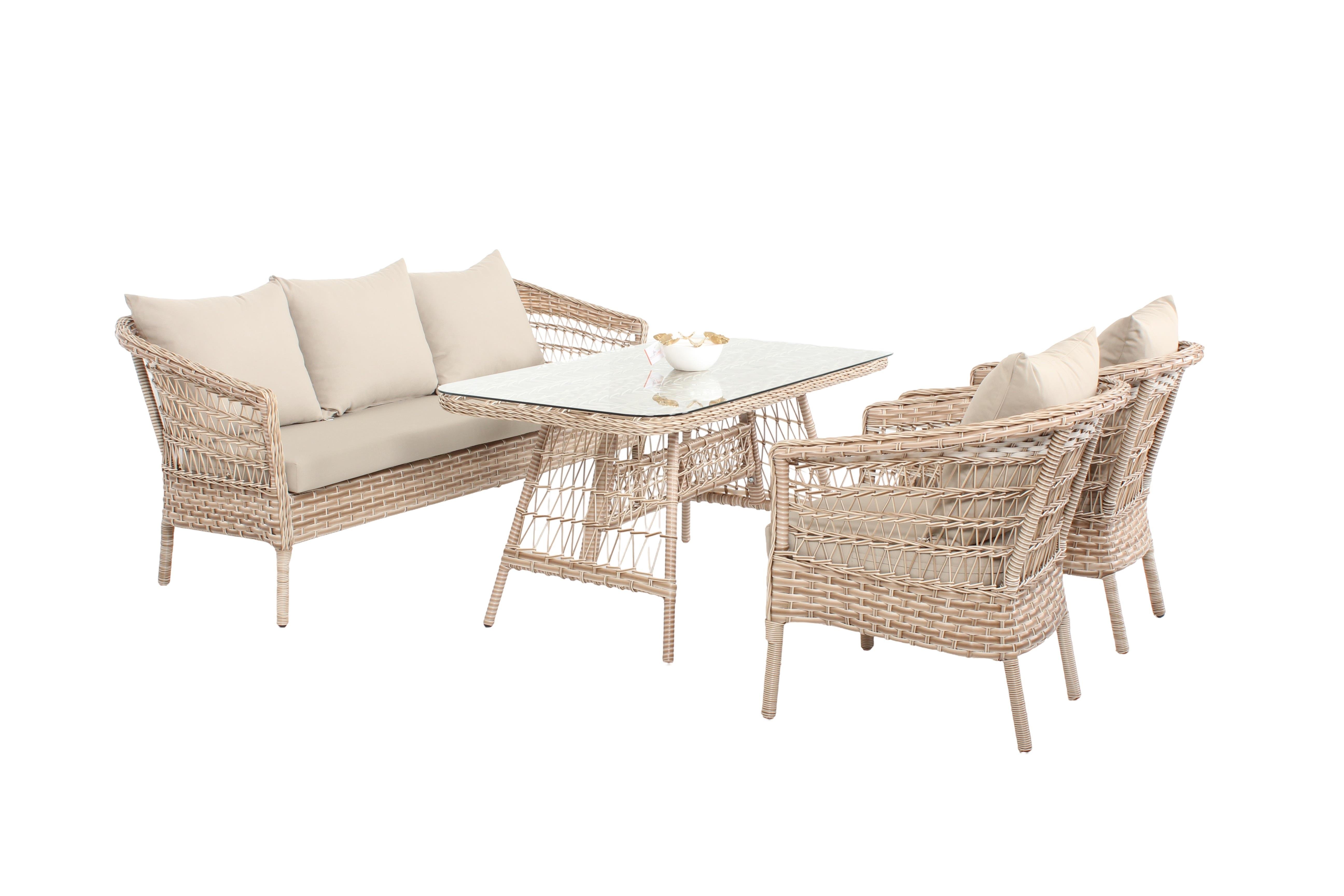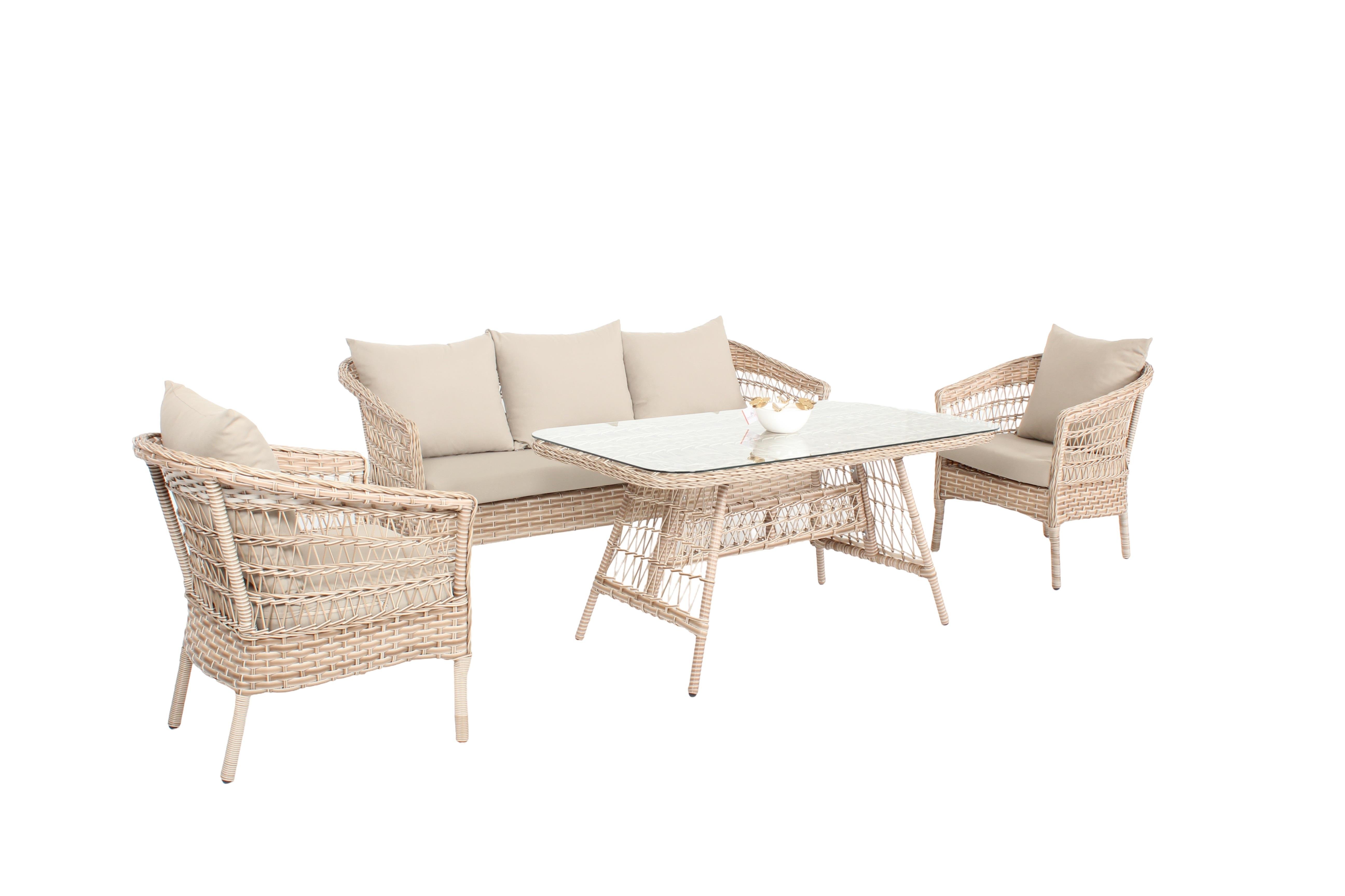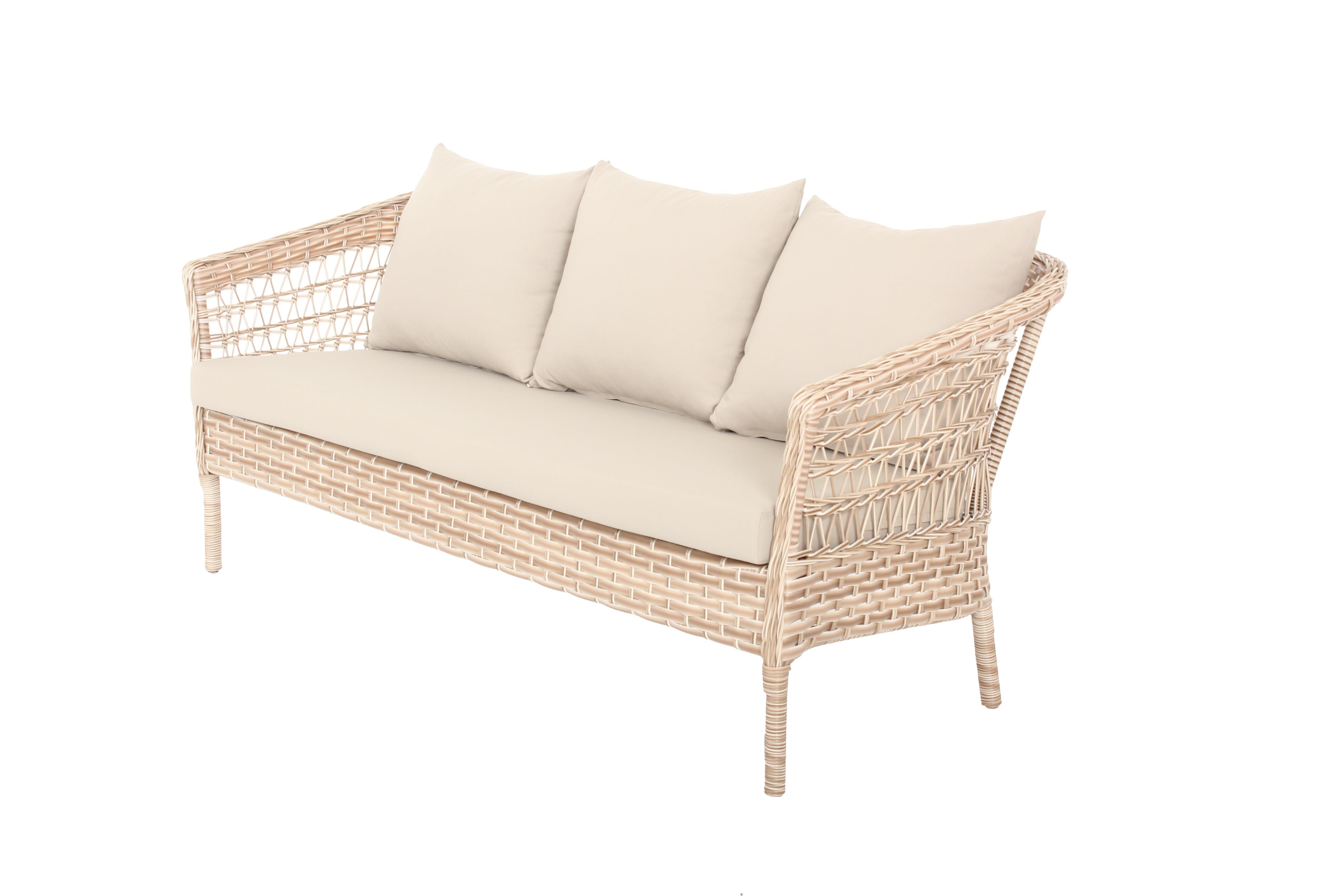 Güneş ve suya dayanıklı sentetik rattan malzeme ile elde örülmüştür.