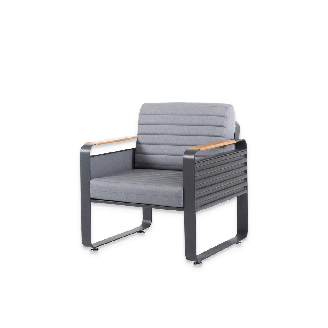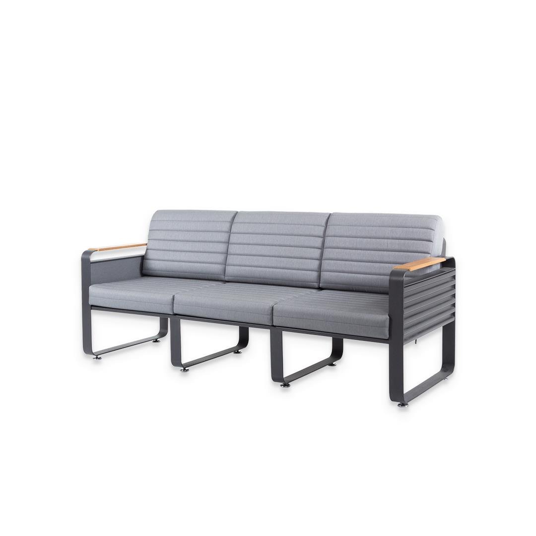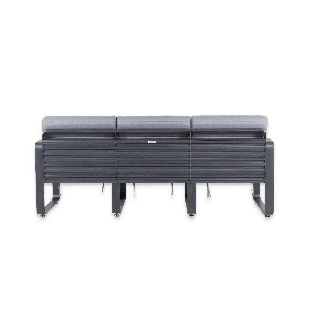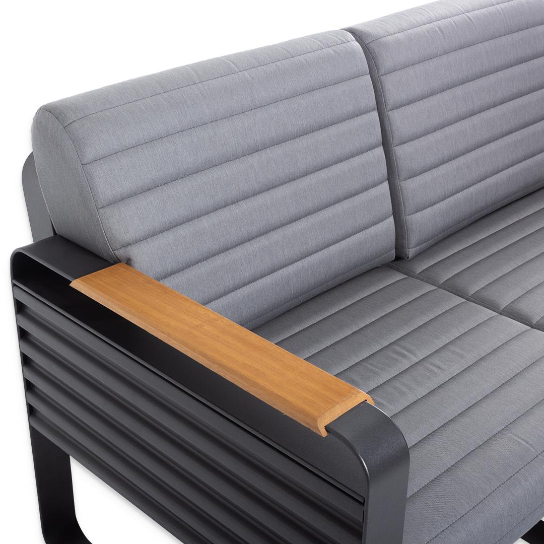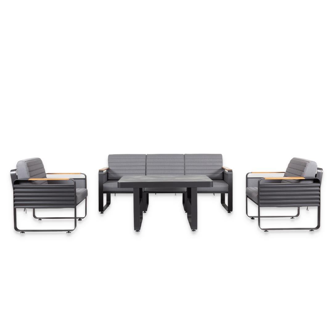 Sehpa üzerinde dış mekana uygun çizilmez Kompakt bulunmaktadır. Paslanmaz alüminyum iskeletlidir. Kumaş su itici ve kolayca temizlenebilen minderler ürüne dahildir. Görselde yer alan aksesuarlar ürün içeriğine dahil değildir.