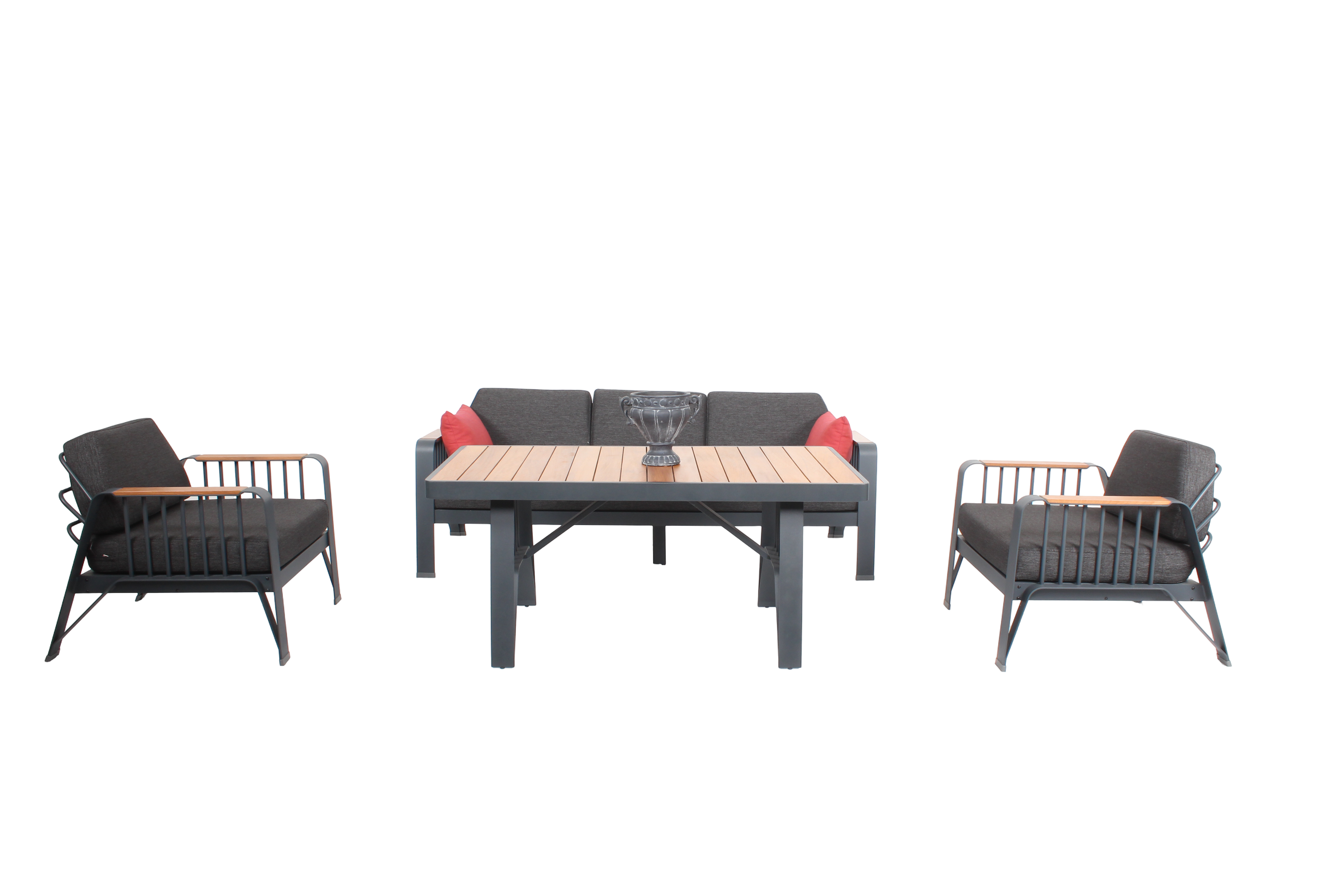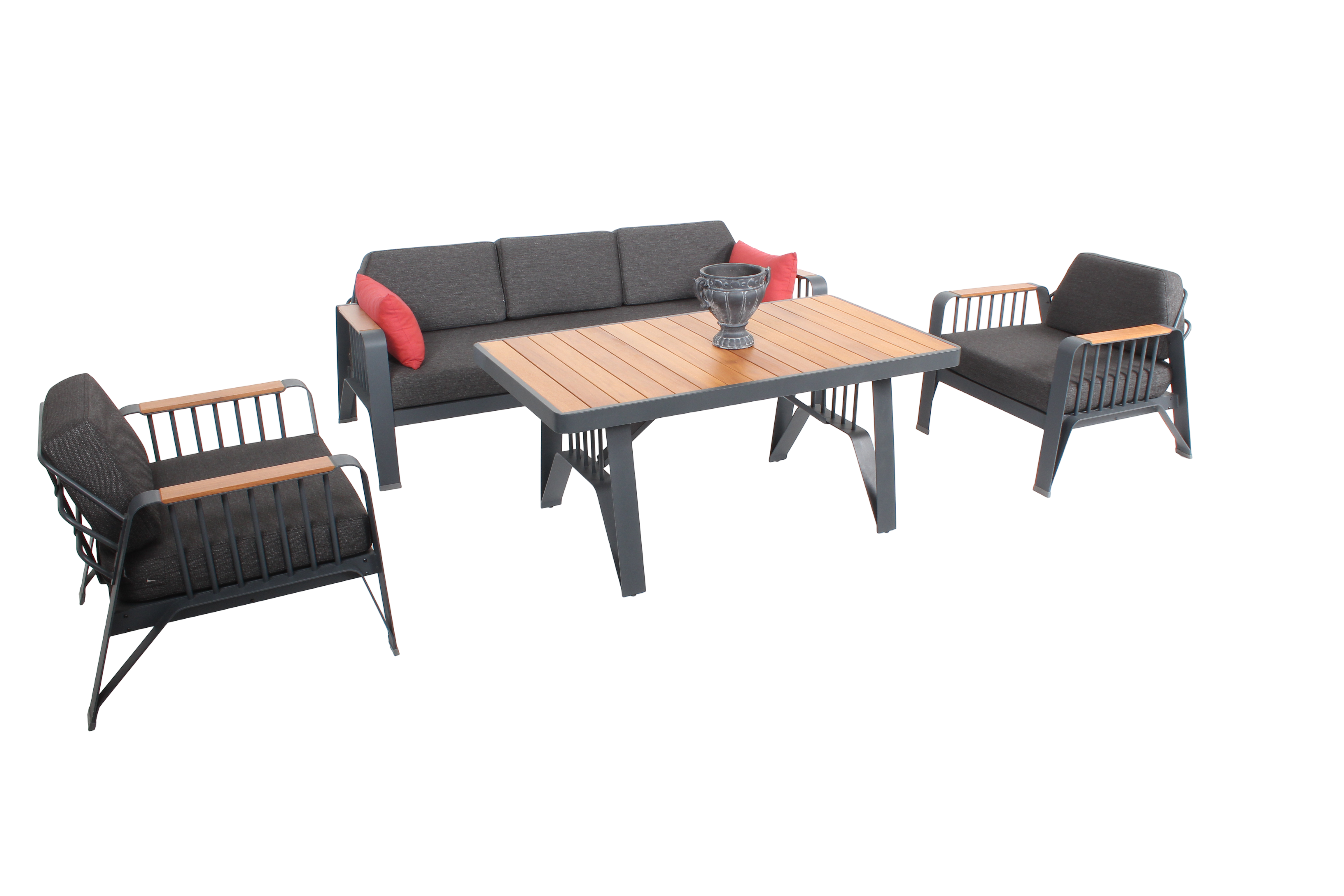 Güneş ve suya dayanıklı birinci kalite paslanmaz alüminyum ile üretilmiştir. Kumaş su itici ve kolayca temizlenebilen minderler ürüne dahildir. 4 sezonlu dış mekan kullanıma uygundur.
