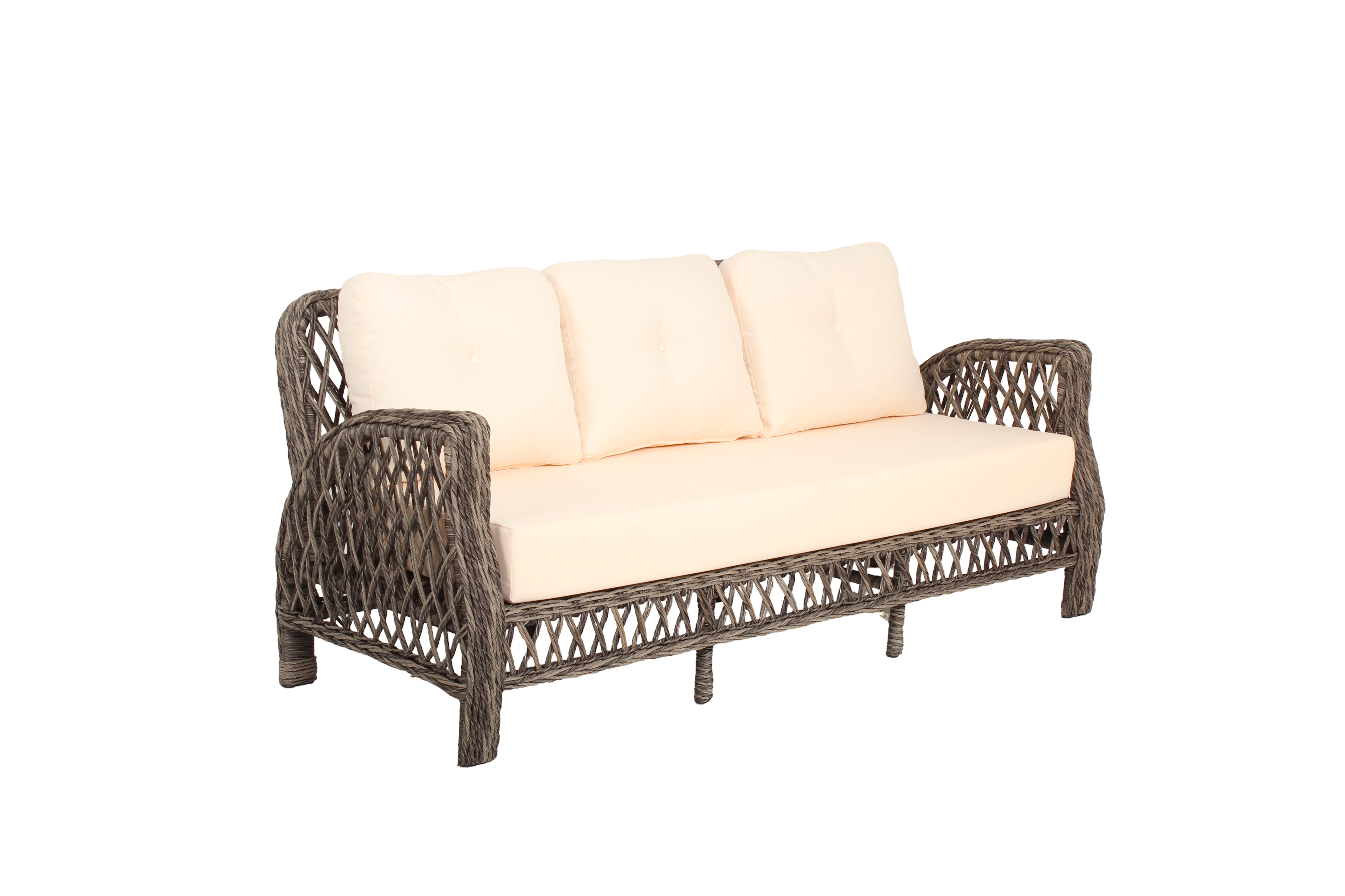 Güneş ve suya dayanıklı Wintech sentetik rattan malzeme ile elde örülmüştür.