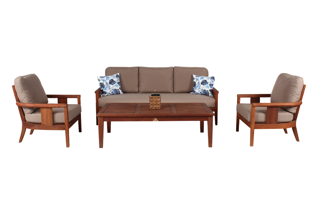 Güneş ve suya dayanıklı birinci sınıf İroko malzeme ile üretilmiştir. Kumaş su itici ve kolayca temizlenebilen minderler ürüne dahildir. 4 sezonlu dış mekan kullanıma uygundur. Görselde yer alan aksesuarlar ürün içeriğine dahil değildir.