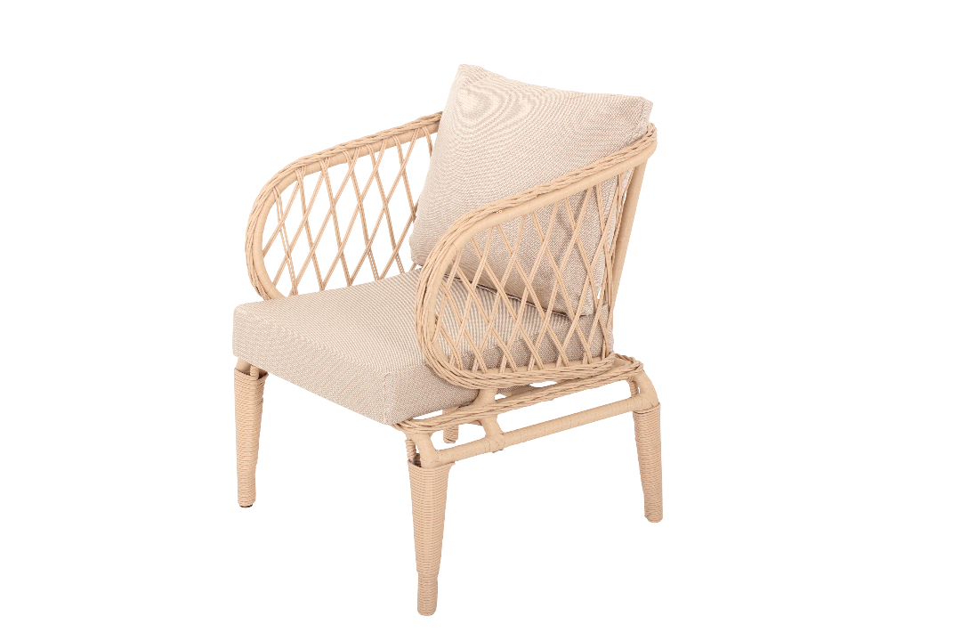 Güneş ve suya dayanıklı yüksek kalite sentetik rattan malzeme ile elde örülmüştür.
