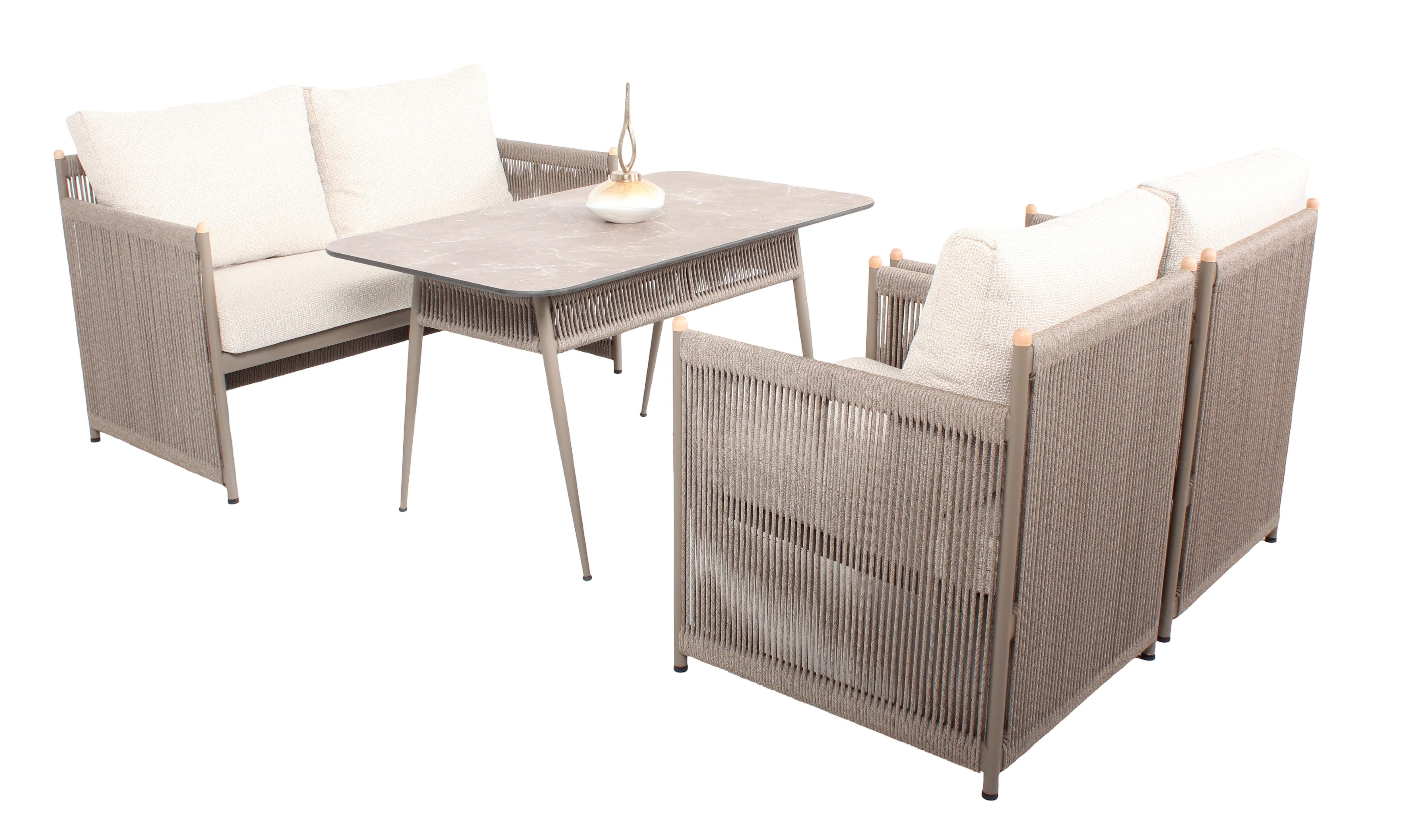 Kumaş su itici ve 2 yıl solmazlık garantisi özelliklerine sahiptir, minderlerle kolayca temizlenebilmektedir.
