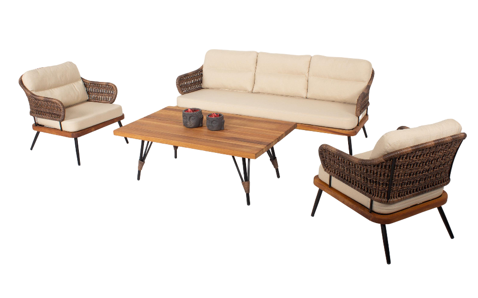 Güneş ve suya dayanıklı sentetik rattan ve alüminyum malzeme kullanılarak üretilmiştir.