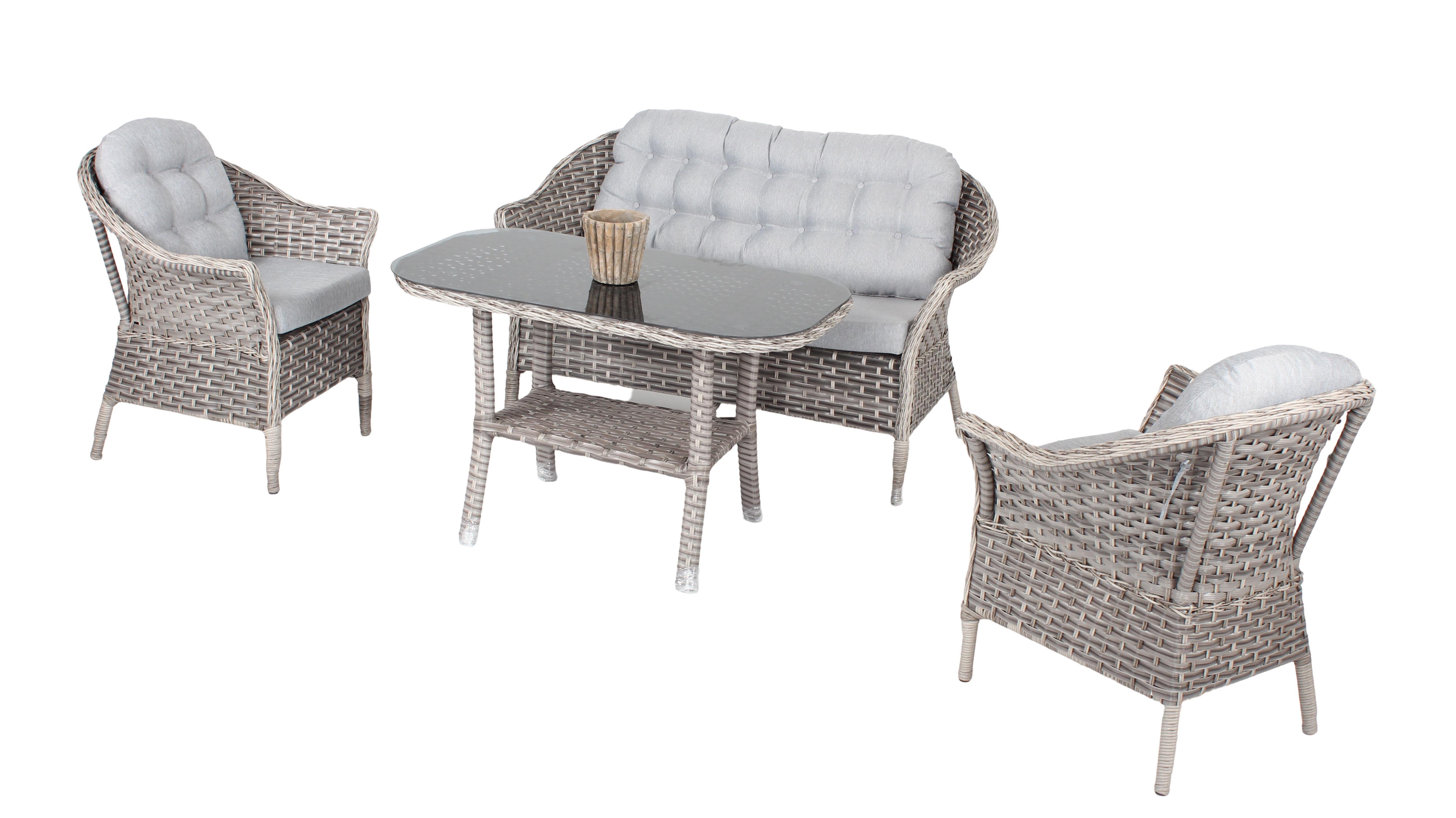 Balkon takımı 1 adet ikili koltuk 2 adet tekli koltuk 1 adet sehpadan oluşmaktadır ve minderler ürün içeriğine dahildir.
