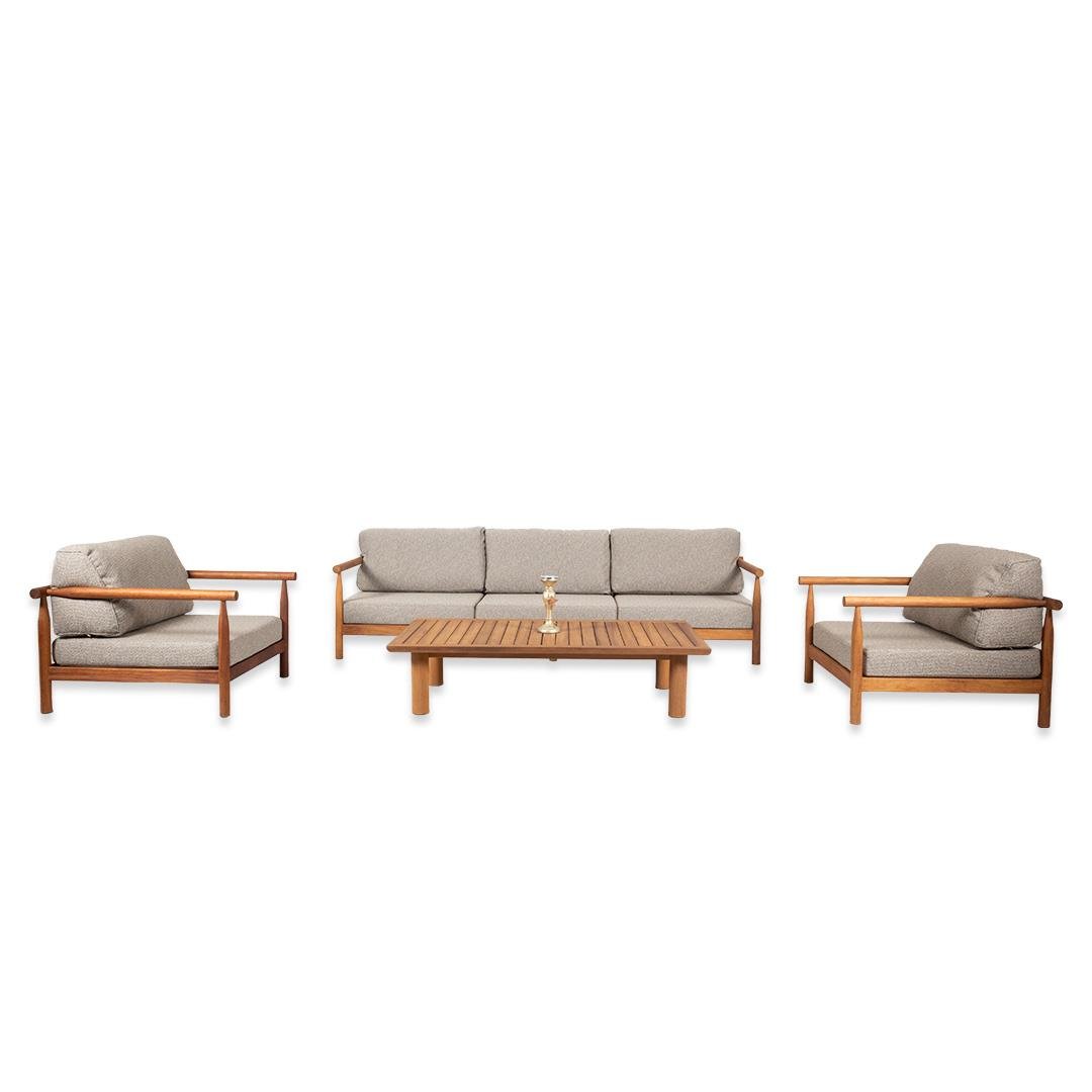 Güneş ve suya dayanıklı birinci sınıf İroko ağacı ile üretilmiştir. Kumaş su itici ve kolayca temizlenebilen minderler ürüne dahildir. 4 sezonlu dış mekan kullanıma uygundur.