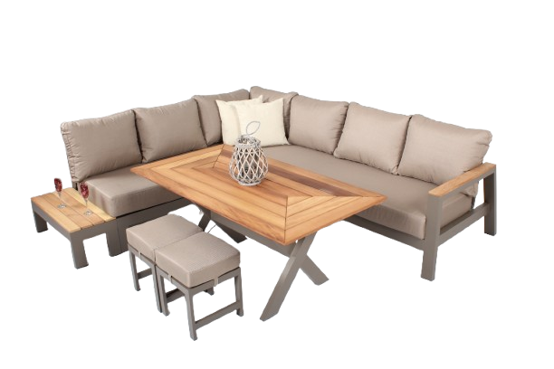Köşe takımı 1 adet köşe modül 1 adet orta sehpa 1 adet yan sehpa ve 2 puftan oluşmaktadır.