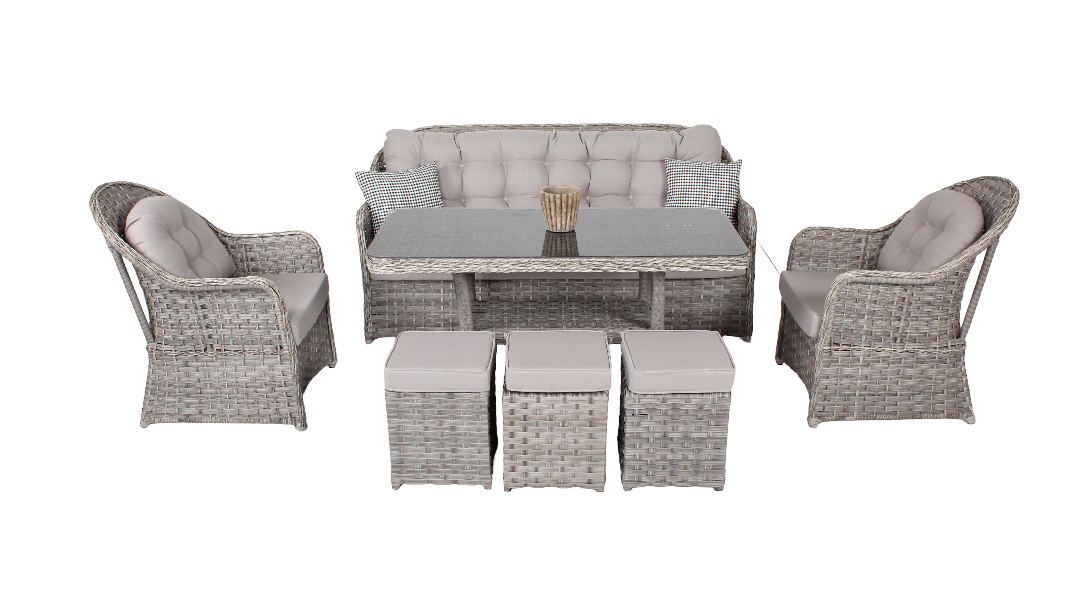 Güneş ve suya dayanıklı yüksek kalite sentetik rattan malzeme ile elde örülmüştür.