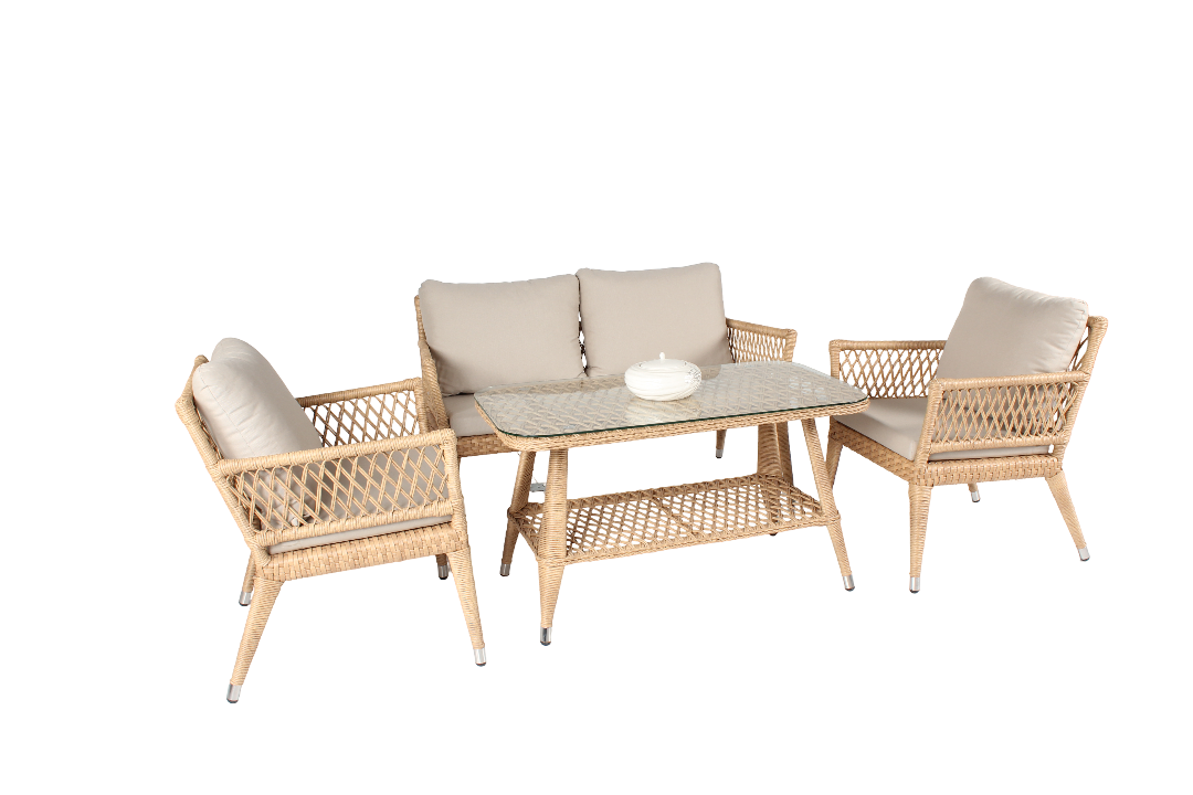 Güneş ve suya dayanıklı yüksek kalite sentetik Rattan ile örülmüştür.