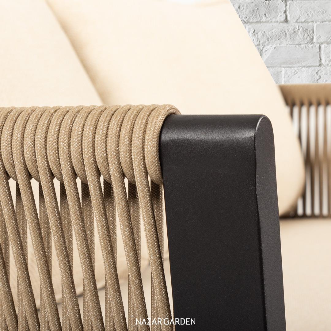 Dış mekana dayanıklı alüminyum malzeme kullanılmış ve UV ışınlarına dayanıklı iplerden elle örülerek üretilmiştir.