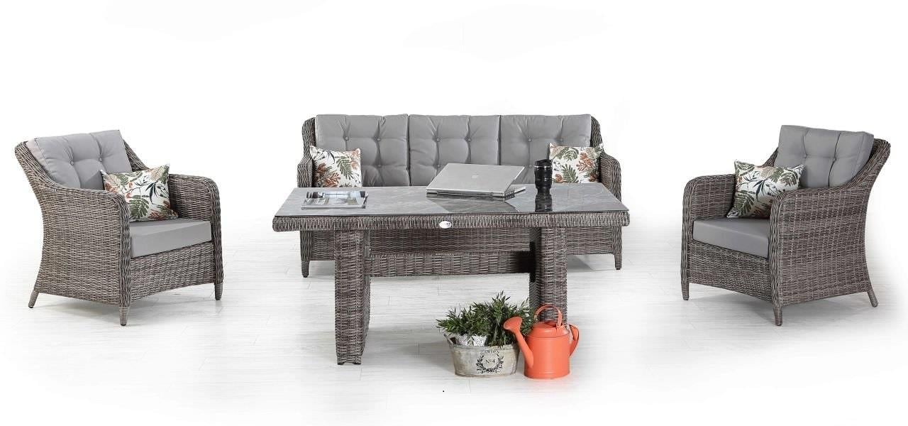 Güneş ve suya dayanıklı yüksek kalite sentetik Rattan ile örülmüştür. El yapımı örgülüdür. Kumaş su itici ve kolayca temizlenebilen minderler ürüne dahildir. 4 sezonlu dış mekan kullanıma uygundur.