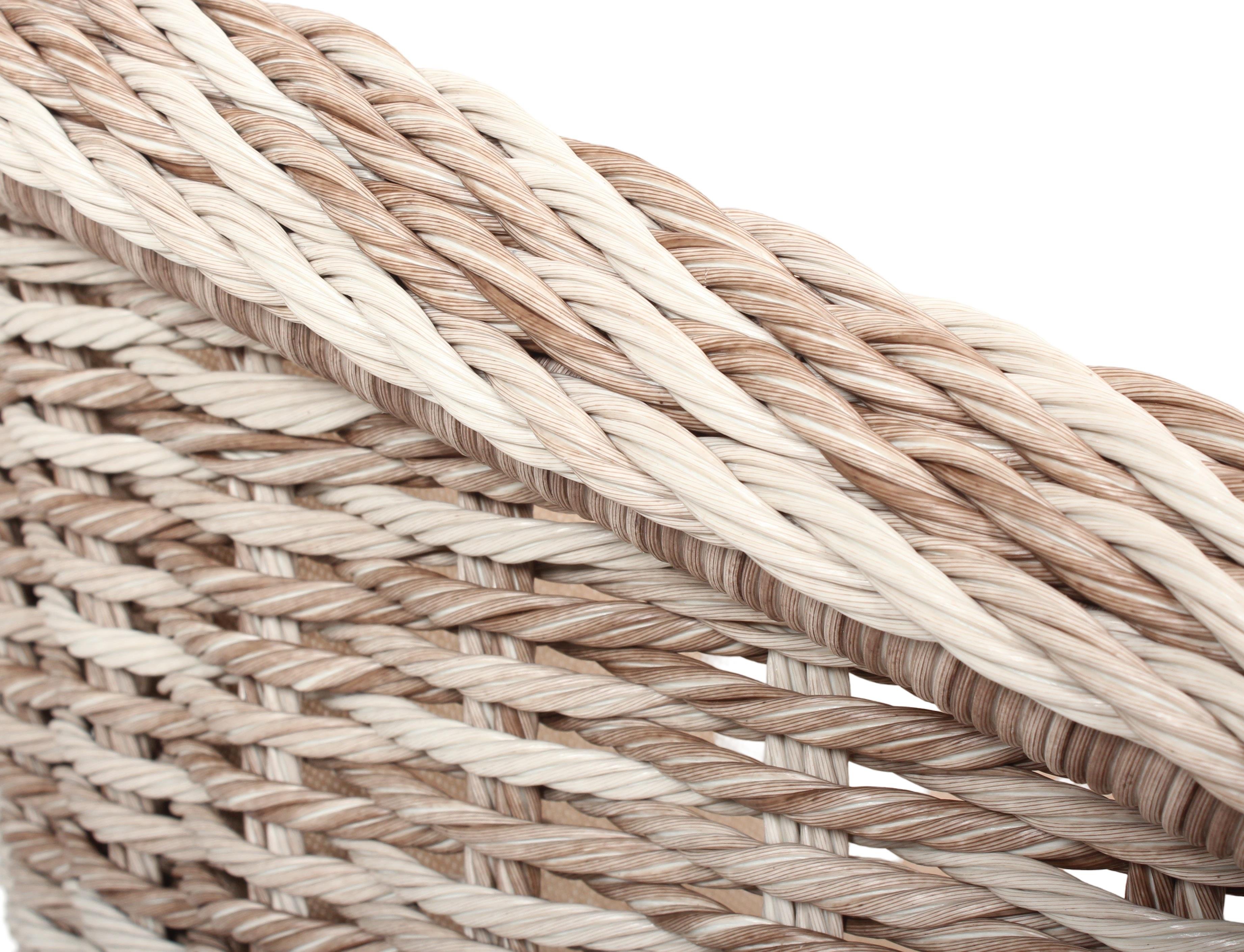 Güneş ve suya dayanıklı sentetik rattan malzeme ile elde örülmüştür.