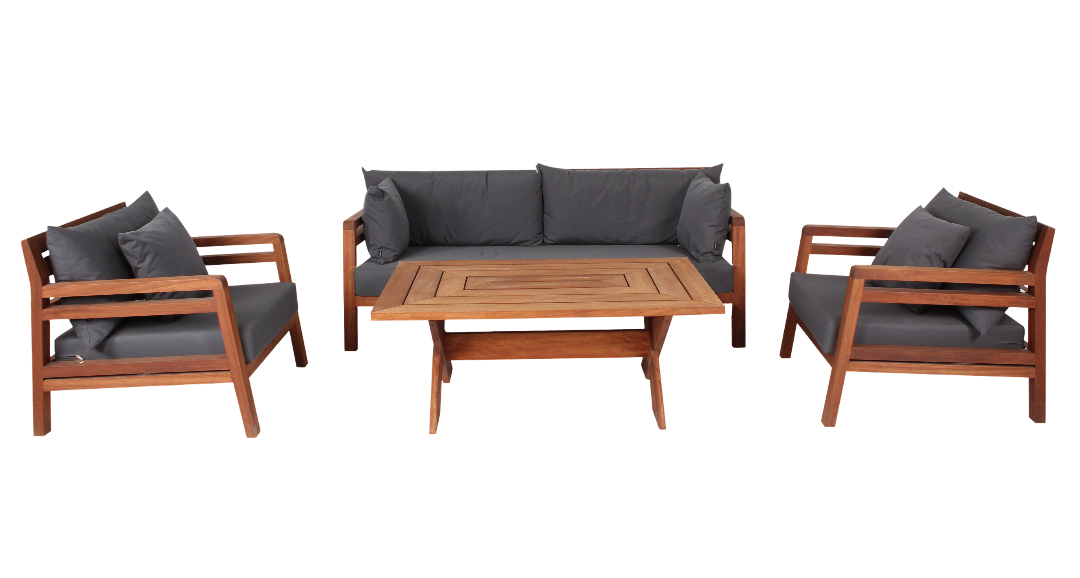 Güneş ve suya dayanıklı birinci sınıf İroko ağacı ile üretilmiştir. Kumaş su itici ve kolayca temizlenebilen minderler ürüne dahildir. 4 sezonlu dış mekan kullanıma uygundur.