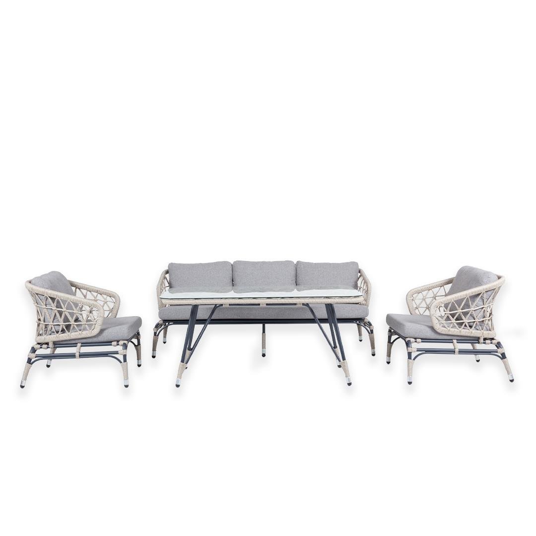 Güneş ve suya dayanıklı yüksek kalite sentetik rattan ve alüminyum malzeme kullanılarak üretilmiştir.