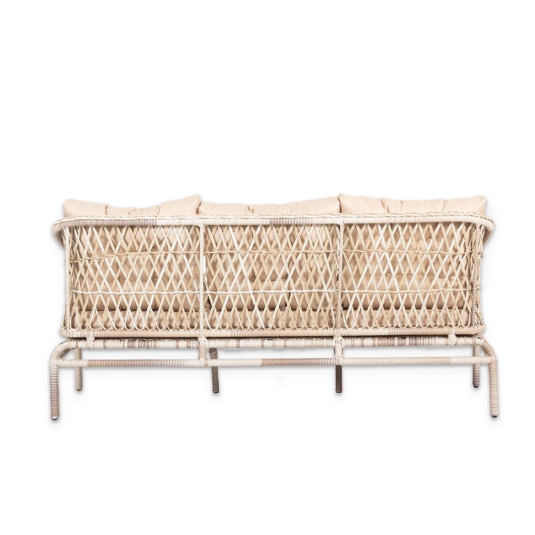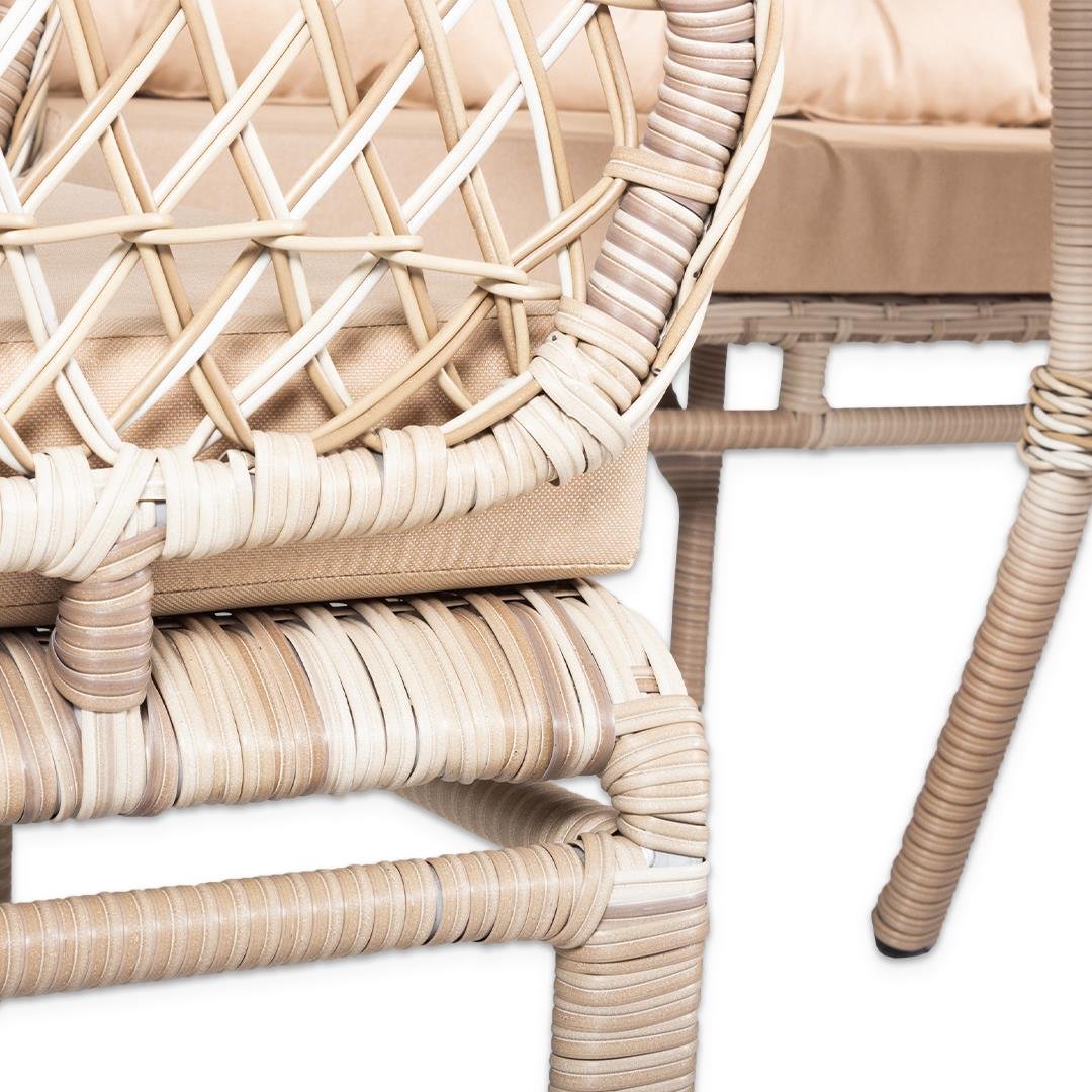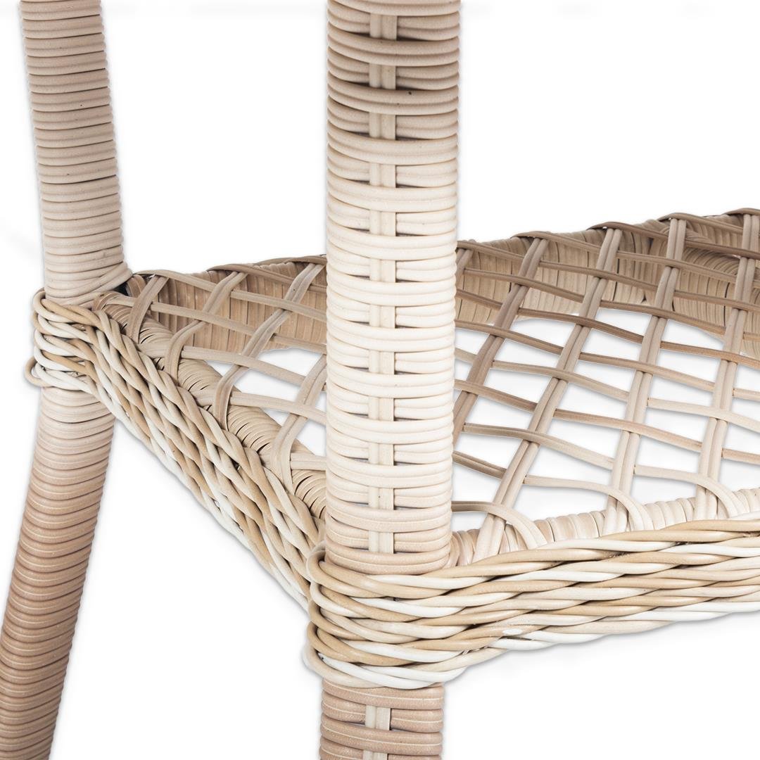 Güneş ve suya dayanıklı sentetik rattan malzeme ile elde örülmüştür.