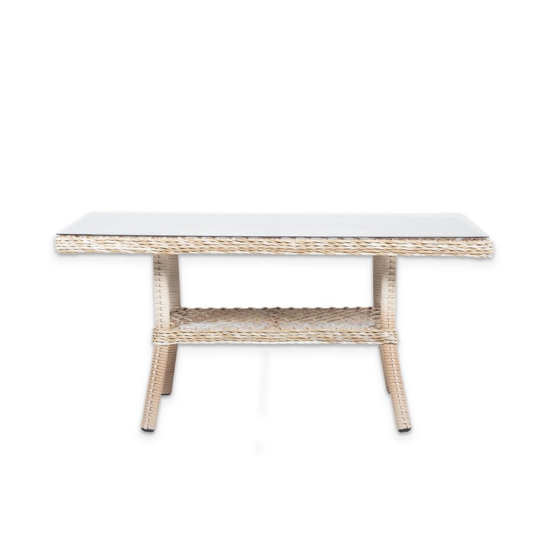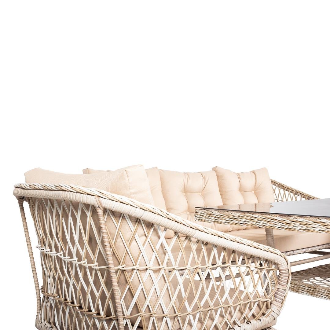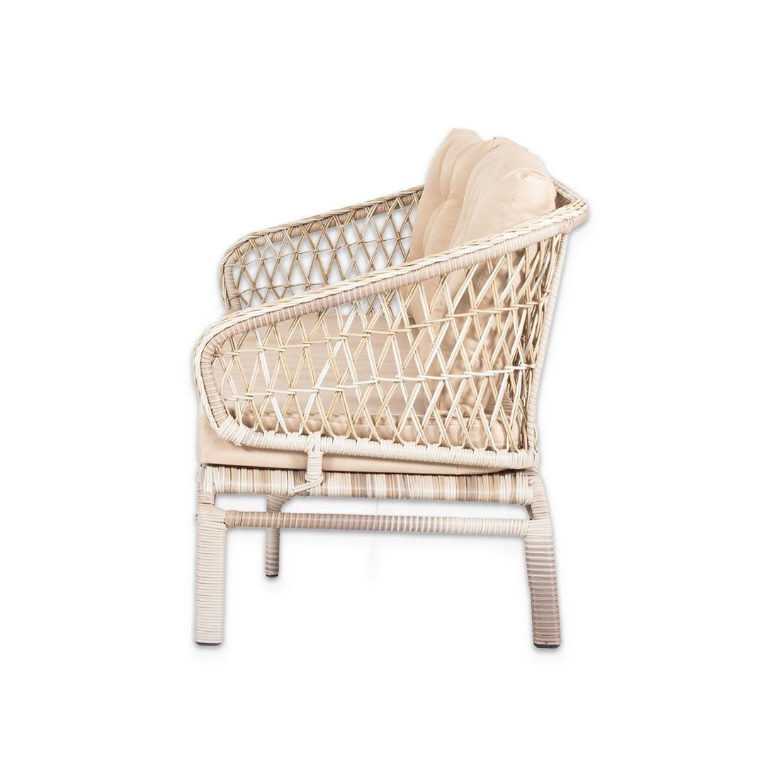 Güneş ve suya dayanıklı sentetik rattan malzeme ile elde örülmüştür.