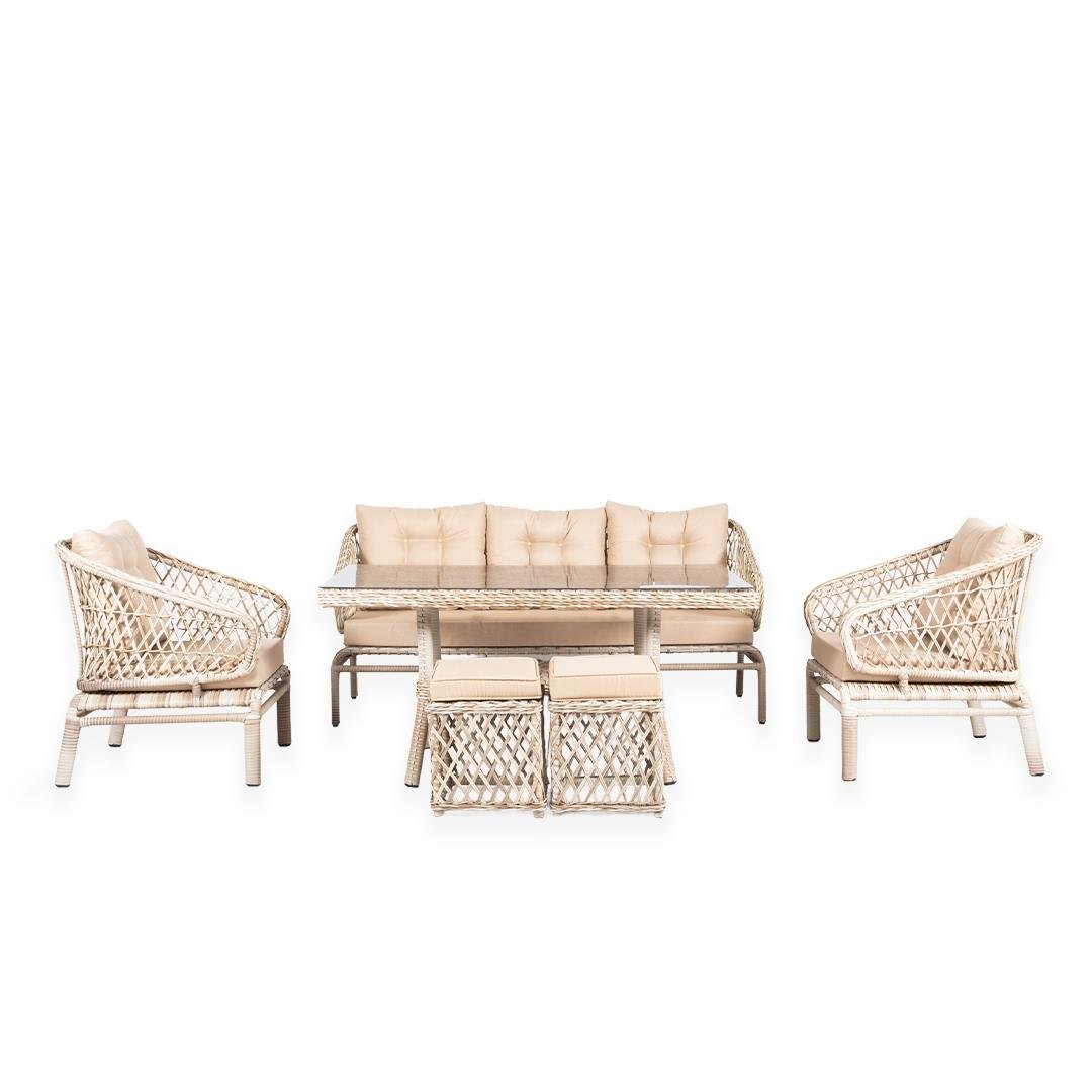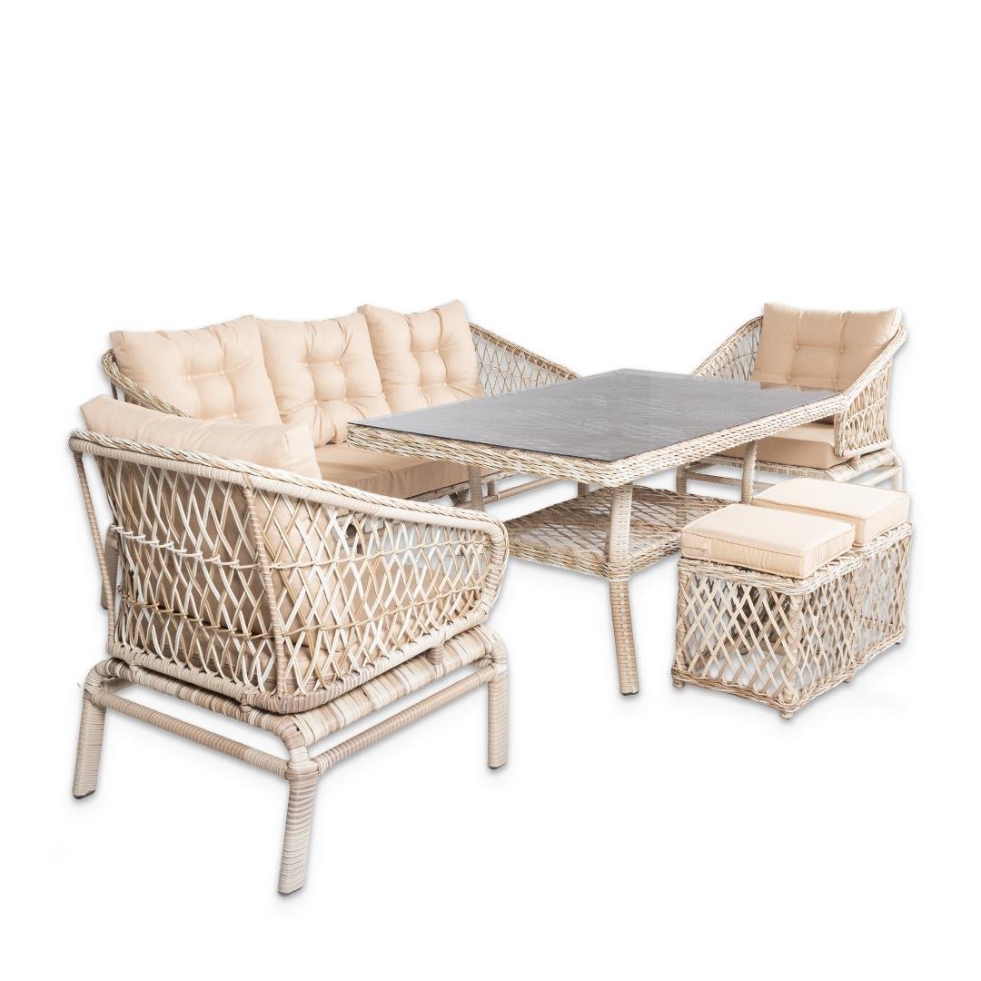 Oturma grubu içeriği 1 adet üçlü koltuk 2 adet tekli koltuk 1 adet orta sehpa ve 2 adet puf olup minderler ürüne dahildir.
