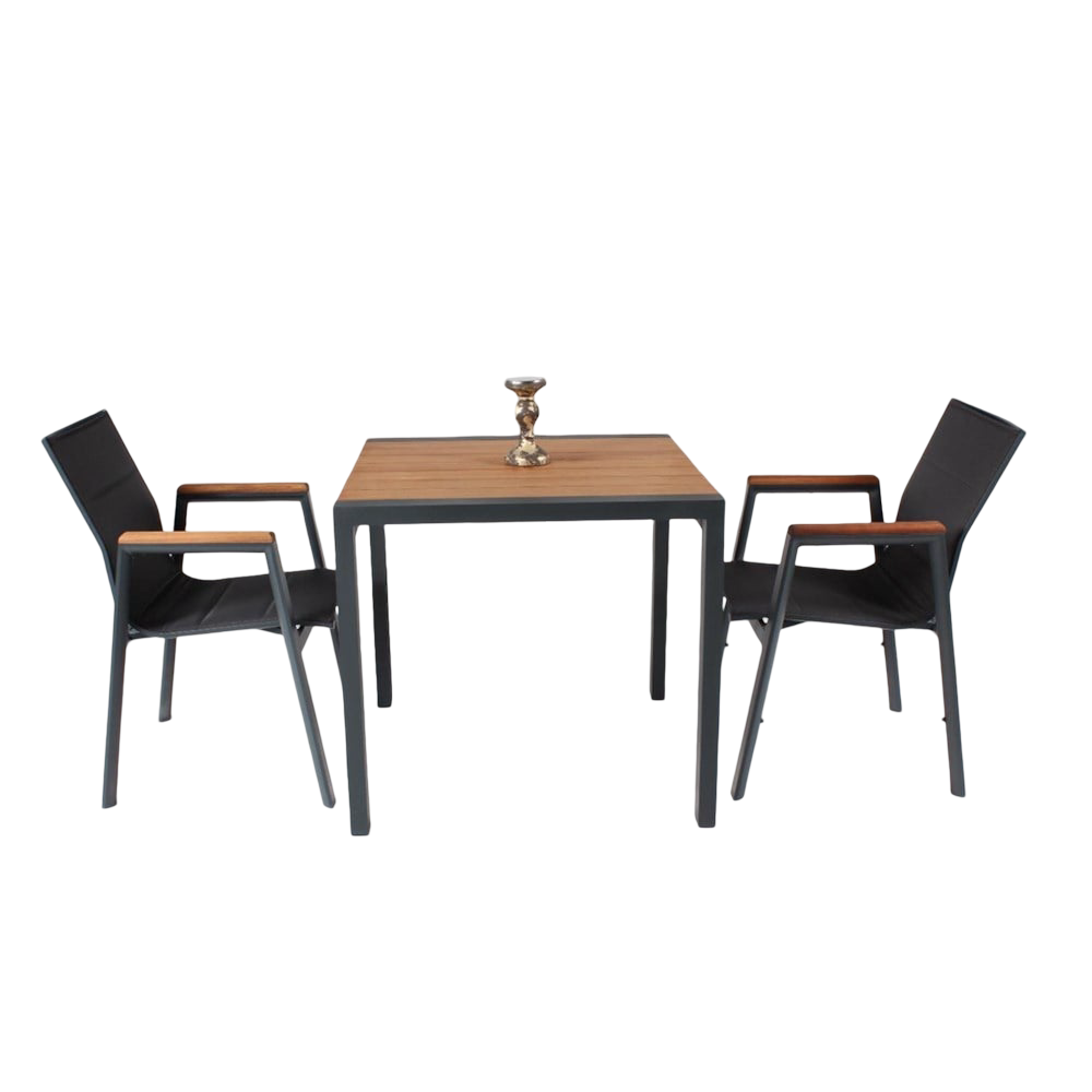 Güneş ve suya dayanıklı paslanmaz Alüminyum malzeme ile üretilmiştir. Ahşap aksamı İroko ağacından üretilmiştir. Sandalyenin sırtı ve oturumu file malzeme ibarettir. 4 sezonlu dış mekan kullanıma uygundur. Görselde yer alan aksesuarlar ürün içeriğine dahil değildir.