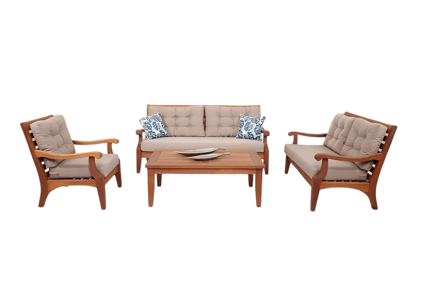Güneş ve suya dayanıklı birinci sınıf İroko ağacı ile üretilmiştir. Kumaş su itici ve solmazlık garantisi özelliklerine sahiptir. 4 sezonlu dış mekan kullanıma uygundur.