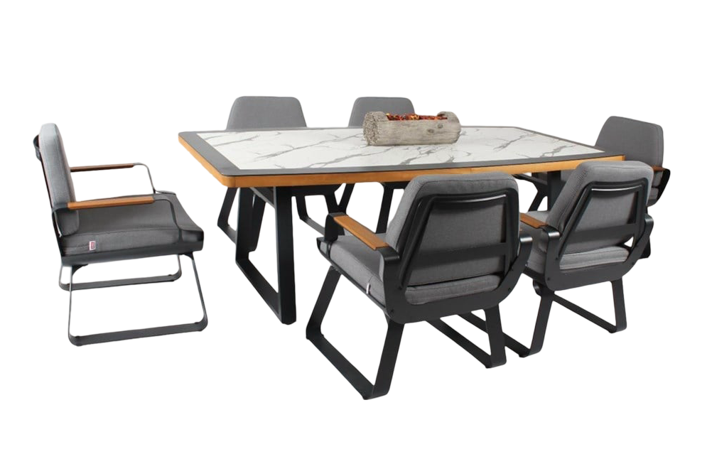 Güneş ve suya dayanıklı paslanmaz Alüminyum malzeme ile üretilmiştir. Ahşap aksamı İroko ağacından üretilmiştir. Kumaş su itici ve kolayca temizlenebilen minderler ürüne dahildir. Sehpa üzerinde çizilmez Kompakt bulunmaktadır. 4 sezonlu dış mekan kullanıma uygundur. Görselde yer alan aksesuarlar ürün içeriğine dahil değildir.